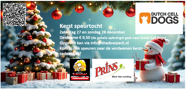 Zaterdag 27 & 28 december organiseert Hondenschool Shadow Pack een speurtocht voor jong en oud. Iedereen kan mee doen en er is altijd prijs!